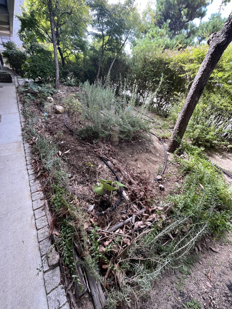 そして、バイオネストの応用で、花壇の縁取りにも枝を使っているのですが、ここにも今回剪定したローズマリーの枝などを差し込み、これにより縁取りも作りたてのように蘇ってくれました^_^