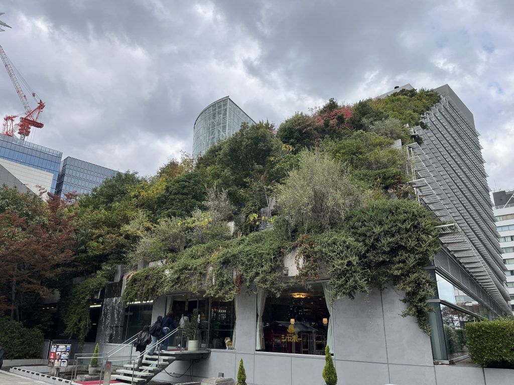 下の方から見ると、ビルの建物に植栽された樹木が育ち、山の木々のように豊かな緑になっているのが、比較的わかりやすいでしょうか。