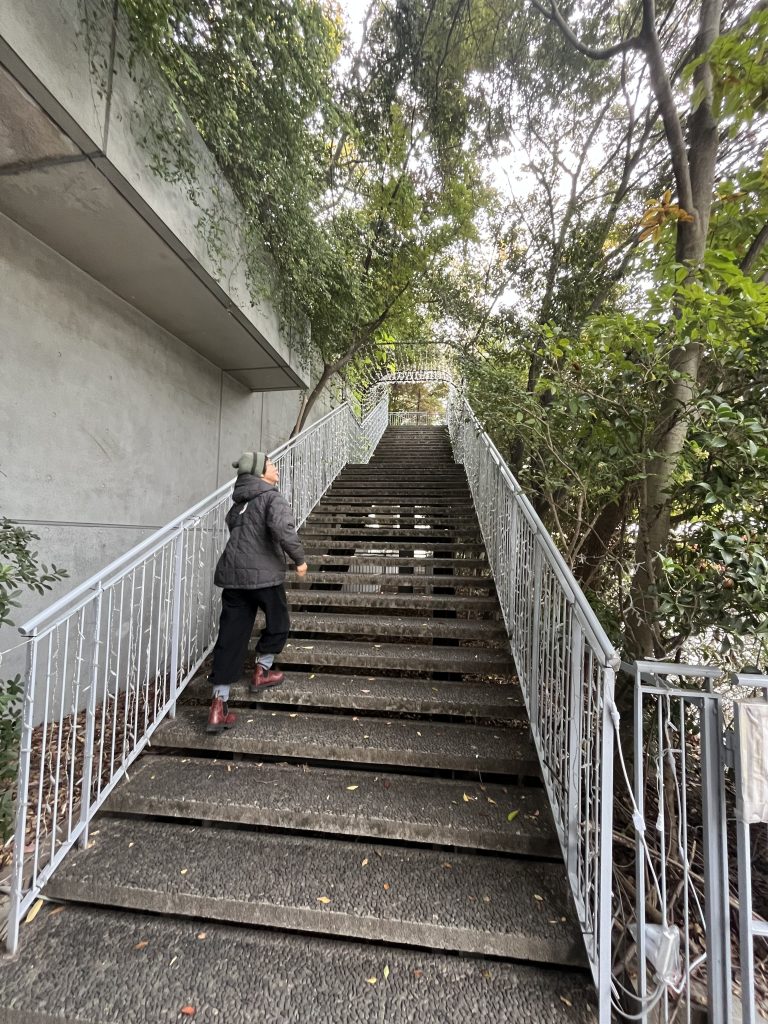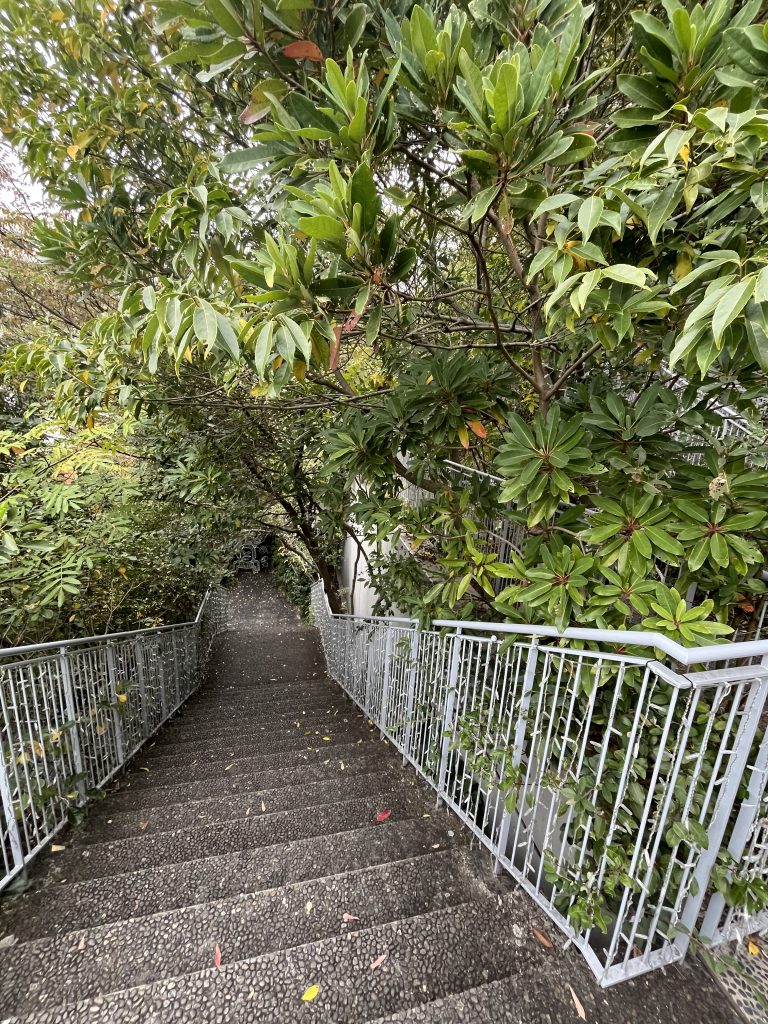 建物には、外側部分の階段を使って、森のようになった植栽エリアの中を回遊することができました。