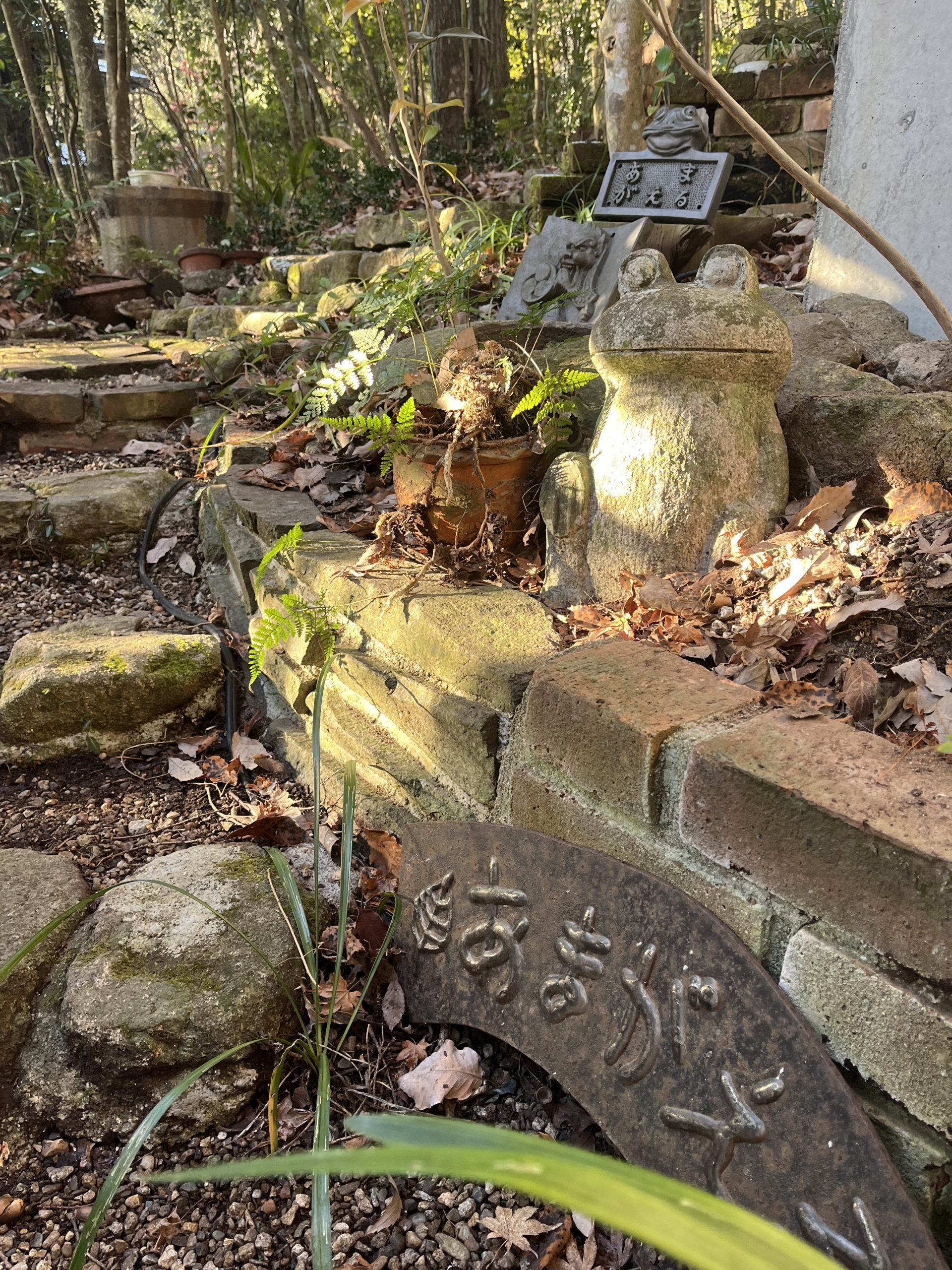 門をくぐったところには、あまがえるの創業の際に、今でもおおいにお世話になっている親方からいただいた、カエルの石像が出迎えてくれます。