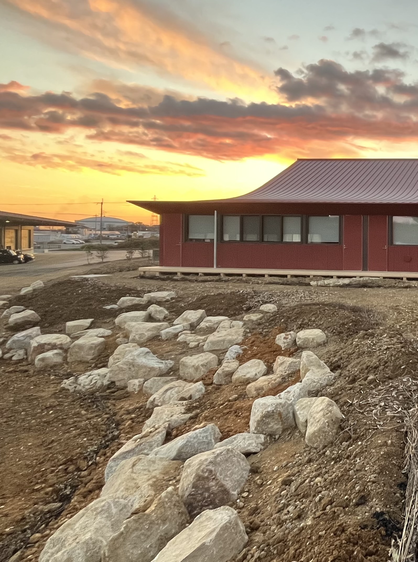現在進行形の工事の紹介です。加古川市のモノづくりメーカーの新社屋の緑地づくりに、社員の皆様方にも、少しばかり参加してもらっています。 植栽エリアの周囲の小さな溝へのソダの伏せ込みや、落ち葉のマルチ敷き作業です。 ソダや落…